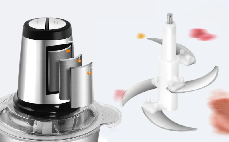 Dengan motor mesin pengaman otomatis & 4 mata pisau super tajam, tekan tombolnya 6-8 detik, membantu menghaluskan segala jenis makanan yang anda butuhkan