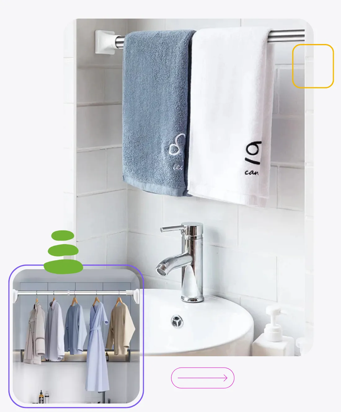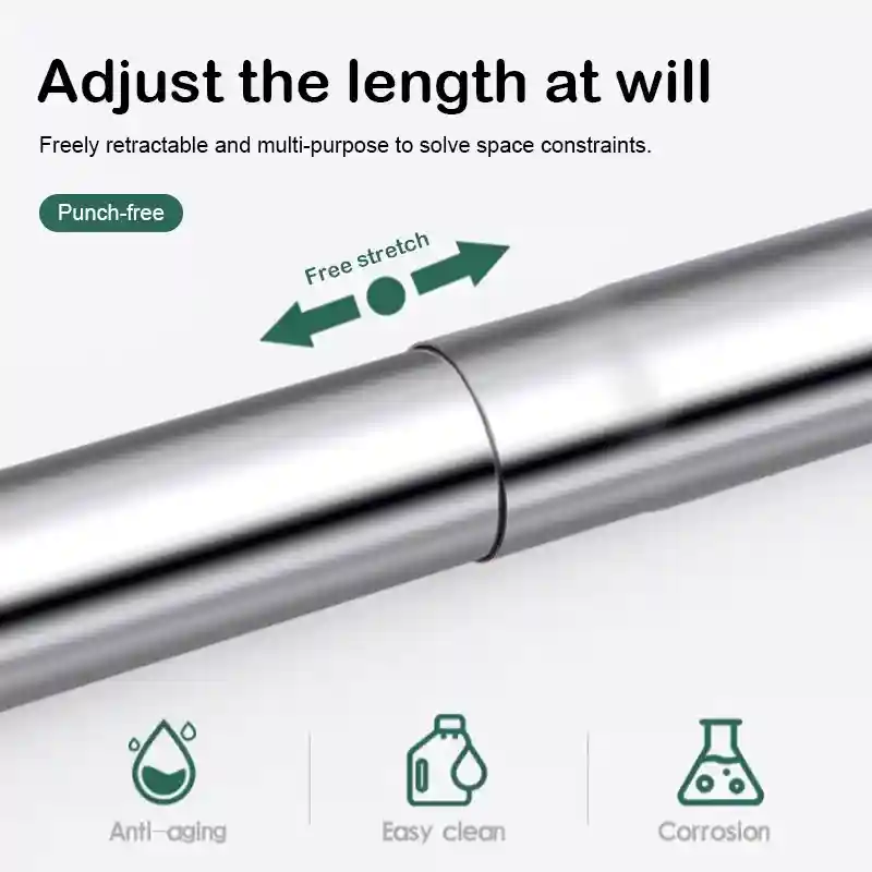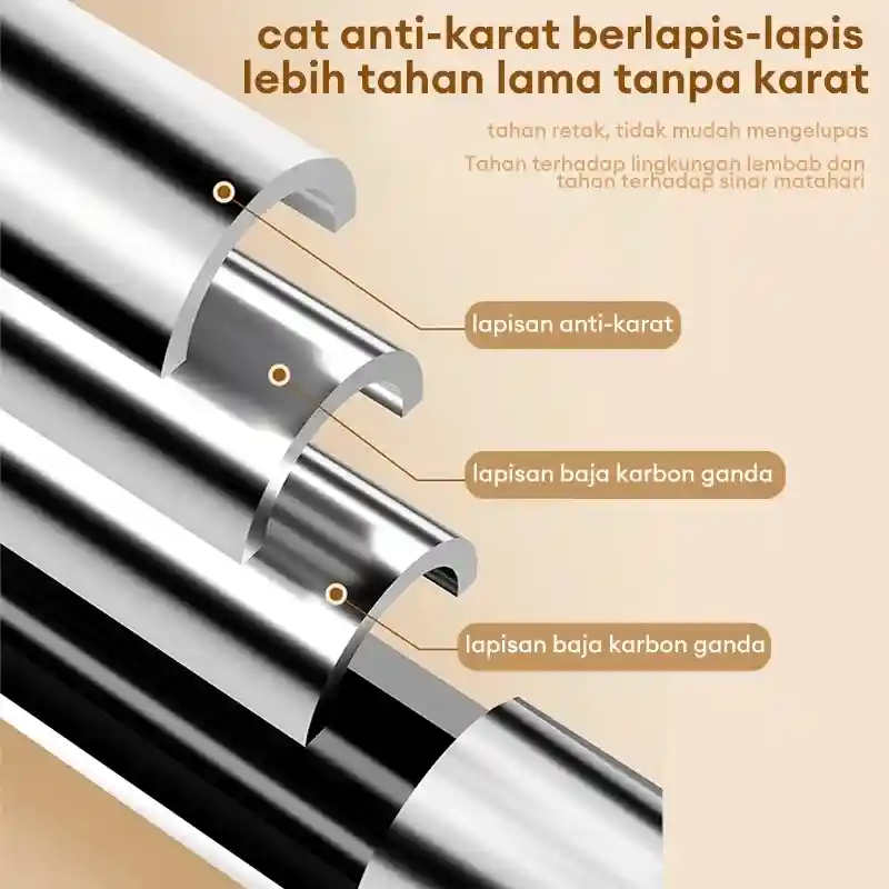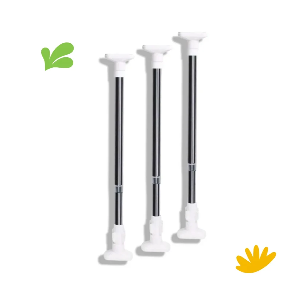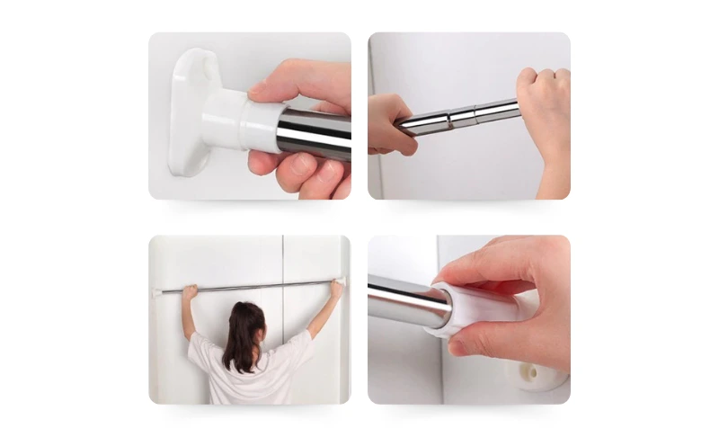 Tinggal tarik sesuai jarak tembok rumah, putar pada sambungan tiang sebagai pengunci panjang tiang, dan putar mur pada ujung tiang agar lebih memanjang dan merekat pada dinding